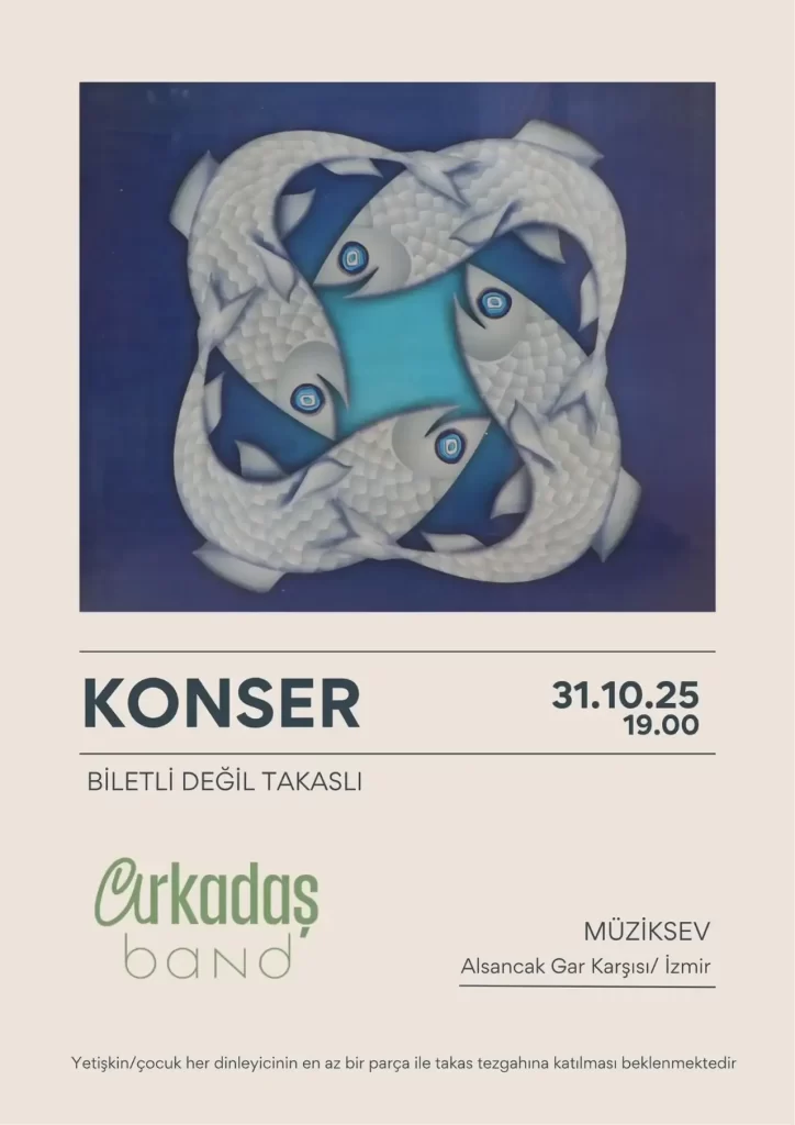Arkadaş Okul ve Yedi İklim Eğitim Kooperatifi bünyesinde çocuklarla yetişkinlerin birlikte dinleyebileceği müzikler yapma arzusuyla yola çıkan Arkadaş Band, ilk konserini 31 Ekim’de İzmir Müziksev’de gerçekleştirecek. Üstelik bu konser biletli değil takaslı olacak! Çocukluktan gelen ezgileri birlikte yaşam kültürüne yoğurmak isteyen Arkadaş Band, özellikle Anadolu’da kaybolan/tehlike altında olan dillerde müzik yapmaya dair özen gösteriyor. Düzenledikleri tüm etkinliklerin herkese açık olmasını ve topluluk kültürüne hizmet etmesini önemsediklerini vurgulayan Grup üyeleri, konser buluşmasını da bu nedenle takasla birleştirdiklerini ifade ediyor. “Benim olan senin, senin olan benim” diyen Arkadaş Band, “biz bize” müzik yapmaya çağırıyor. Ayrıca yakın zamanda Filistin için bir şarkı besteleyen Arkadaş Band, “Şiir bir uçağı düşüremez ama pilotun kafasını karıştırabilir!” diyor…